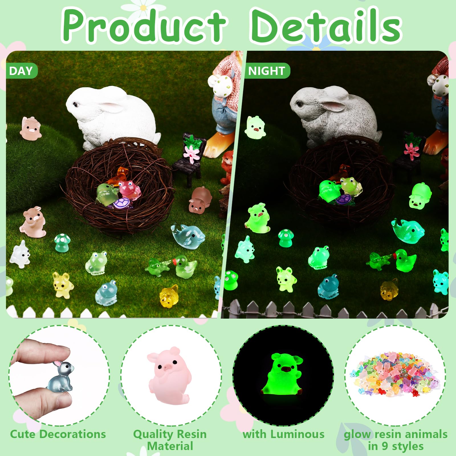 150 Pcs Mini Resin Animals Luminous Mini Animals Luminous Mini Resin Animals Glow in The Dark Figurines Mini Ducks Frogs Rabbits Turtle Lizard Tiny Toy Animal for Landscape Garden Dollhouse Decoration