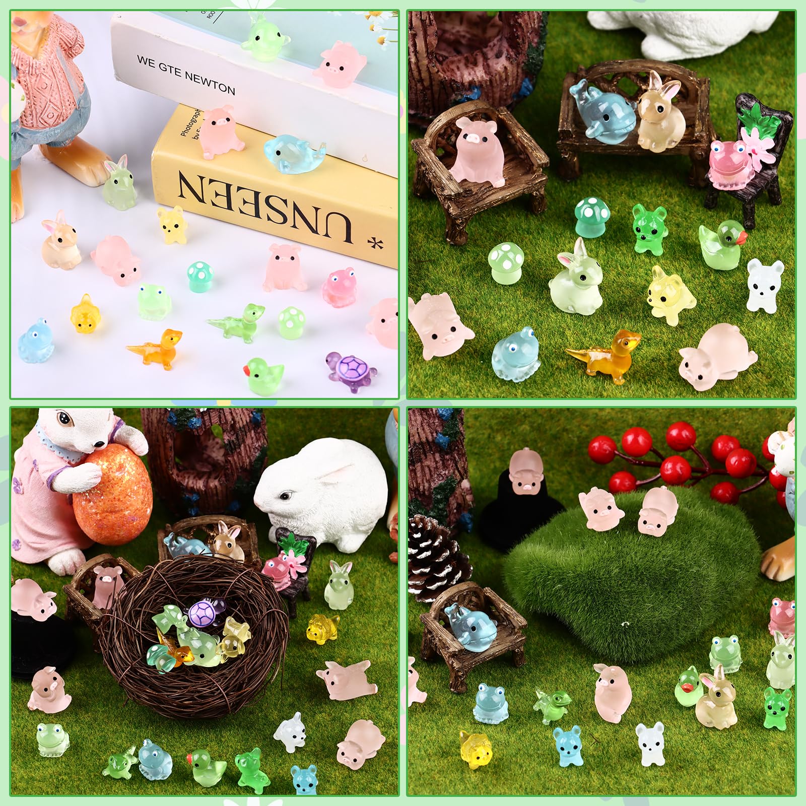 - Glow in the Dark Decor: These tiny toy resin animals feature a luminous design that glows by absorbing sunlight; The more light they absorb, the brighter and longer they glow; At night, you'll witness these adorable miniature animals glowing beautifully, creating a warm and joyful atmosphere for your home decorations.