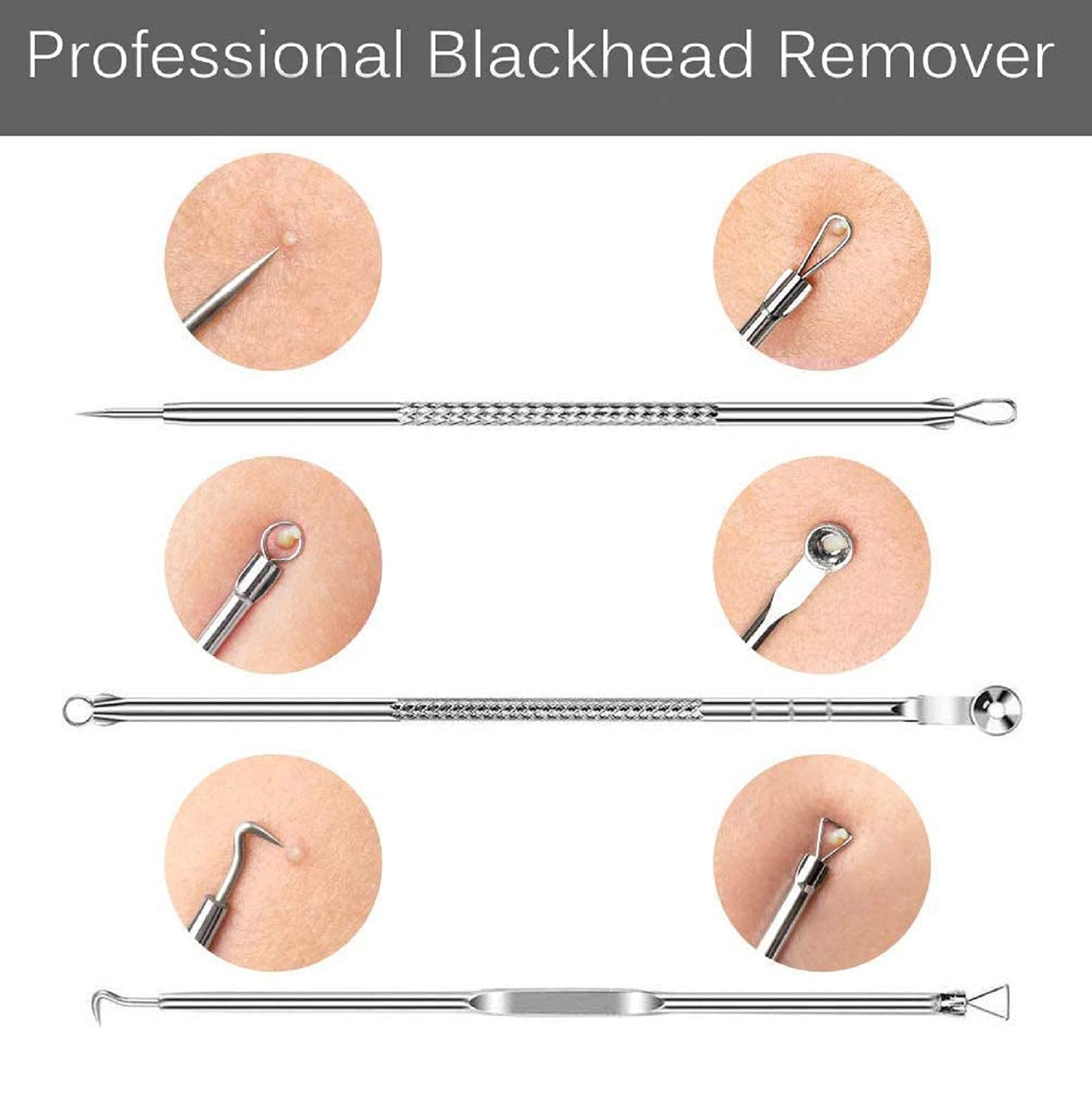 - [Facial Care Tools]: Please do not pick on the skin with your fingers! Professional extraction tools help clean pores, remove acne and various blemishes.