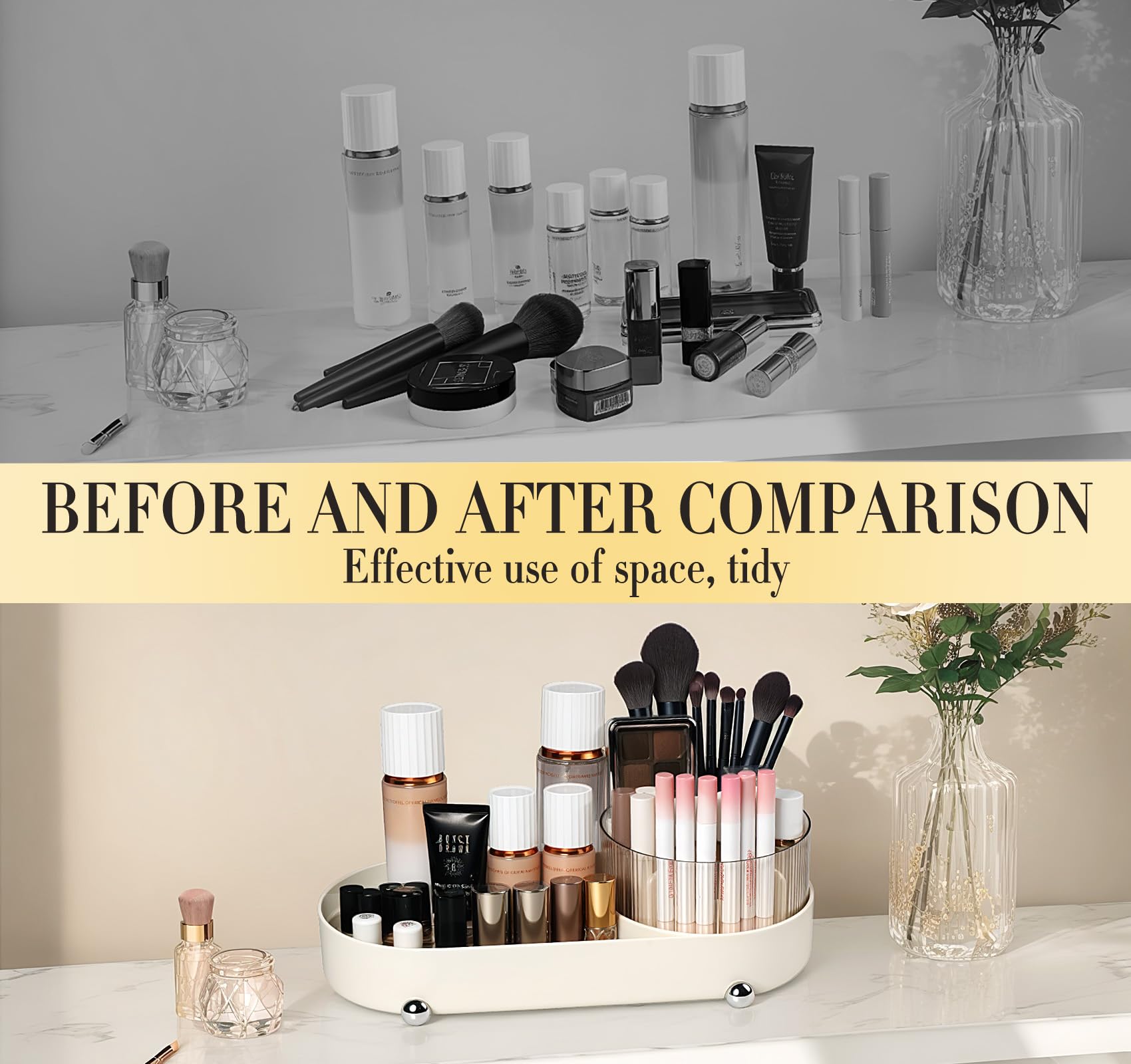 - Thoughtful Gift: Vanity organisers not only provides storage space but also decorates the desktop.Makeup holder elegant design and practical features make it the ideal gift for your wife, girlfriend, or daughter on birthdays, weddings, Valentine's Day, Thanksgiving, Christmas, and New Year