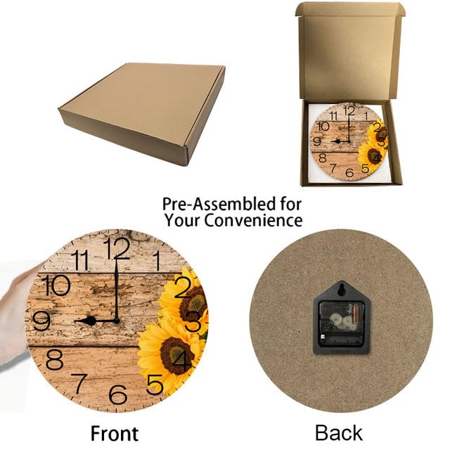 Geroclonup Sunflower Wooden Silent Non Ticking Clock 25cm, Round Wall Clock,Decorative for Living Room, Kitchen, Home,Bathroom, Bedroom, Office or School, Decor on Wood